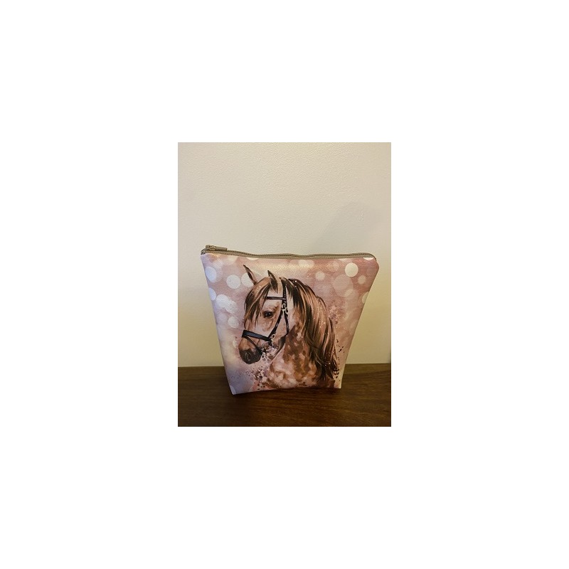 Petite trousse carrée avec panneau imprimé simili cuir sur le devant.