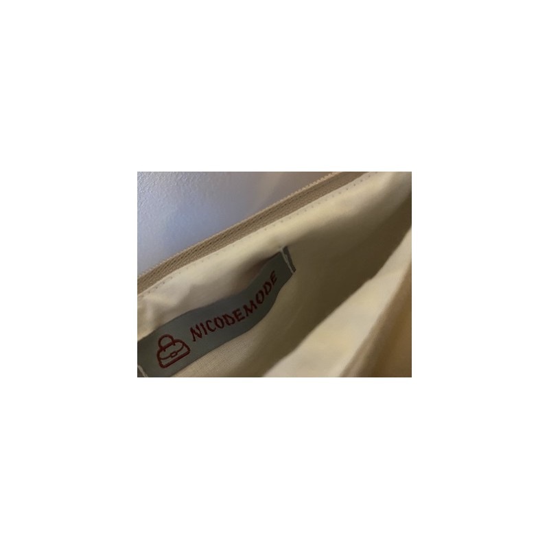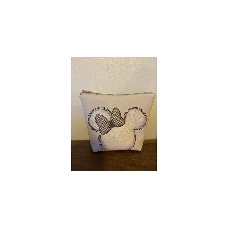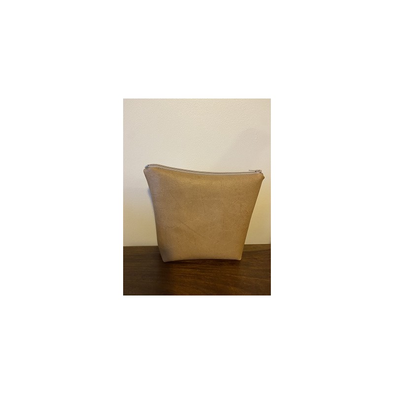 Petite trousse carrée avec panneau imprimé simili cuir sur le devant.